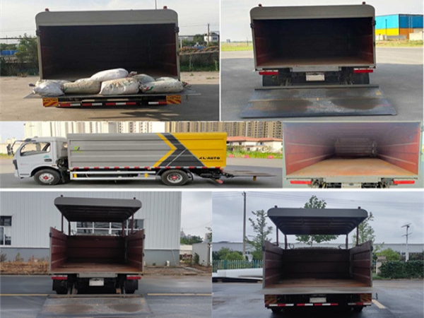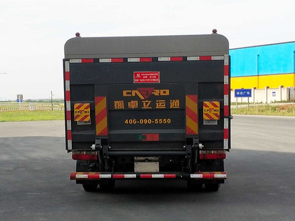 其它 | 1.該車裝備有垃圾箱體,液壓升降頂蓋,液壓尾板等專用裝置,用于實(shí)現(xiàn)垃圾桶的裝卸及運(yùn)輸功能,頂蓋可向上開啟;2.尾板質(zhì)量為:450kg,尾板收起的水平狀態(tài)為:200mm;3.側(cè)面防護(hù)裝置材料為鋁合金,連接方式為螺栓連接,后下部防護(hù)裝置為圓形管材料為Q235B,連接方式:螺栓連接,后部防護(hù)裝置截面尺寸為直徑110mm,離地高度:440mm;4.儲(chǔ)能裝置類型/生產(chǎn)廠家:磷酸鐵鋰電池/寧德時(shí)代新能源科技股份有限公司;電機(jī)額定功率/峰值功率:60kW/110kW;5.ABS型號(hào)/生產(chǎn)廠商為:ABS/ASR-12V-4S/4M/襄陽東風(fēng)隆誠機(jī)械有限公司.6.該車型可選裝車載ETC裝置;7.該車型選裝不同尺寸的垃圾箱體,標(biāo)準(zhǔn)型時(shí)整車長:6650mm,整車寬為:2100mm/2140mm,整車高:2520mm,后懸:1672mm加長型箱體時(shí)整車長:6750mm/6850mm,整車寬為:2140mm/2200mm,整車高:2615mm/2710mm,后懸:1772mm/1872mm,標(biāo)準(zhǔn)型與加長型箱體整備質(zhì)量在誤差范圍內(nèi),忽略不計(jì);8.該車型可選裝輕量化箱體,整備質(zhì)量/額定載質(zhì)量:5200kg/3100kg,隨底盤選裝駕駛室外觀.選裝后部外觀結(jié)構(gòu) |