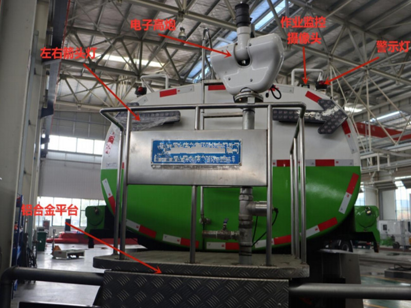 (2) 前沖圓錐噴嘴,自動控制,操作方便靈活沖洗路面寬度可覆蓋 8 條車道;后灑圓柱噴嘴,噴出均勻的扇形水霧,寬度可到 10m,能有效抑制路面灰塵;