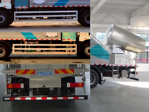 其它 | 1. 介質(zhì):抑塵劑,有效容積7.31立方米,總?cè)萘?.67立方米,罐體總長2700mm,截面(寬*高mm)2450*1300; 整車長/前伸/后伸對(duì)應(yīng)關(guān)系(mm):11350/550/1000,11200/550/850,11070/550/720,10800/0/1000,10650/0/850,10520/0/720,10350/550/0,9800/0/0;2.側(cè)防護(hù)防護(hù)裝置采用鋁合金材質(zhì),后下部防護(hù)裝置采用Q235材質(zhì);側(cè),后下部防護(hù)均采用螺栓連接,后防護(hù)尺寸(高×寬):120×60(mm),離地面高度440mm; 3.儲(chǔ)能裝置單體種類/生產(chǎn)企業(yè): 磷酸鐵鋰電池/寧德時(shí)代新能源科技股份有限公司;儲(chǔ)能裝置總成的生產(chǎn)企業(yè):寧德時(shí)代新能源科技股份有限公司;驅(qū)動(dòng)電機(jī)型號(hào)TZ370XS-LKM1101對(duì)應(yīng)電機(jī)控制器型號(hào)KTZ54X45S-LKC1101,功率:160(KW);驅(qū)動(dòng)電機(jī)型號(hào)TZ366XS50EA對(duì)應(yīng)電機(jī)控制器型號(hào)KTZ54X40SP5S;功率:180(KW); 4.ABS系統(tǒng)生產(chǎn)廠家/型號(hào) :1.長春科密汽車制動(dòng)有限公司/CM4XL.2.WABCO/44600XXXX0;5.專用功能及裝置描述:噴霧系統(tǒng)裝置,儲(chǔ)液罐,氣控系統(tǒng),主要用于道路,廣場(chǎng)或固定場(chǎng)所降塵等作業(yè)功能;選用5300mm軸距,選裝不帶前置高炮,選裝后部噴灑裝置 |