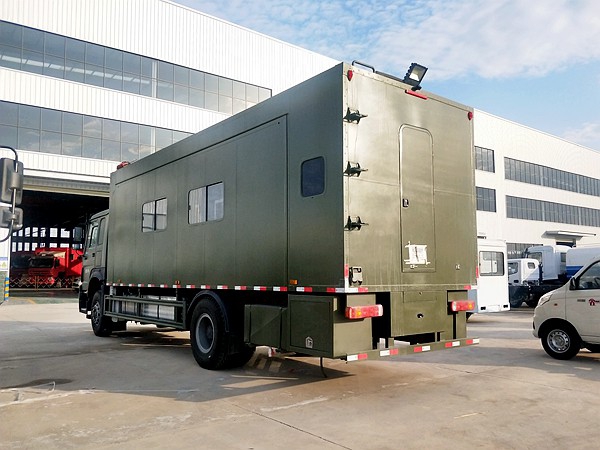 主要專用裝置發電機,折疊床鋪等,選裝配置衛浴間、凈水箱、外掛式空調、衛星天線、吸頂電視、換氣扇、車廂左、右可選裝擴展機構箱體、車廂左、右兩側、后部增加或封閉窗戶、車門、車輛顏色可選裝裝有具有衛星定位的行車記錄儀等,不擴展可供8-12住宿,擴展后可供20-24人住宿。(可根據客戶要求改裝)